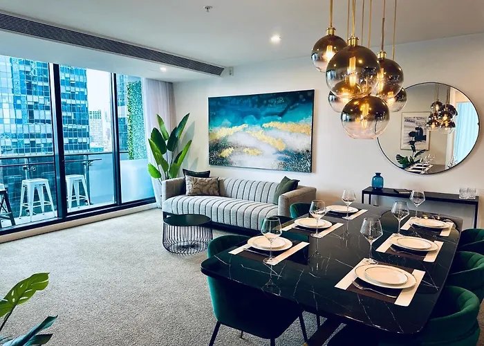 Het Melbourne Aquarium is op 11 minuten wandelafstand van Stylish Southbank Apartment Plus Free Parking For 2 Cars Melbourne, Melbourne 360 the Melbourne Observation Deck at Rialto is er ook vlakbij. In dit appartement van 110 m², op een korte afstand van de Crown Towers Melbourne, vinden gasten een overdekt zwembad.